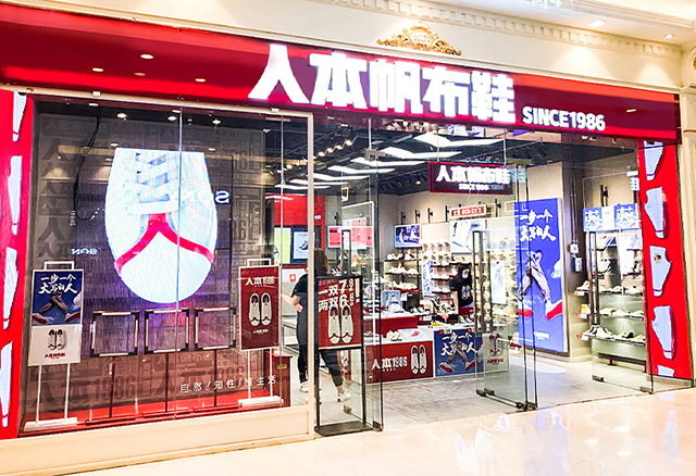 2012年人本商標被行政認定為中國馳名商標,迄今線下門店已經(jīng)突破1000家,每年賣出帆布鞋1000多萬雙!